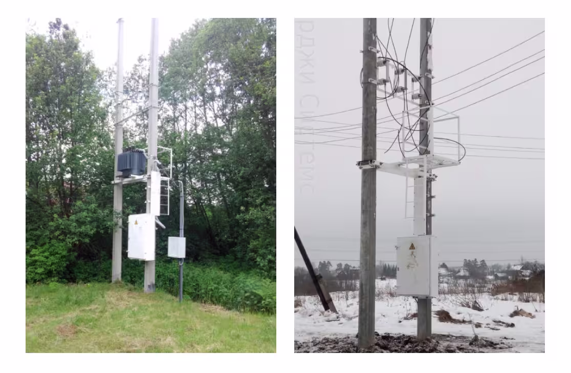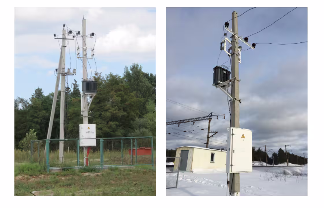 3. КТП столбовые. Изготавливаются на базе одного трехфазного или однофазного трансформатора. Аналогичные по мощности мачтовым подстанциям, чаще применяются для оснащения поселений или фермерских хозяйств. Вид эксплуатации установки наружный, исполнения - тупиковый.