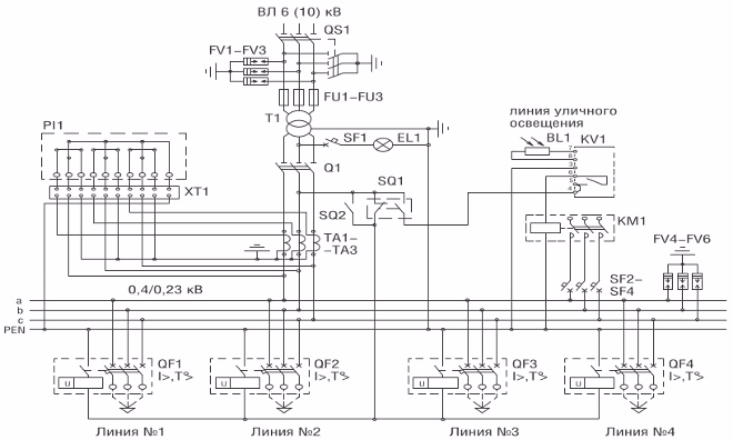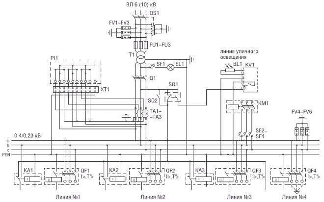 от перегрузки и коротких замыканий линий 0,4 кВ;