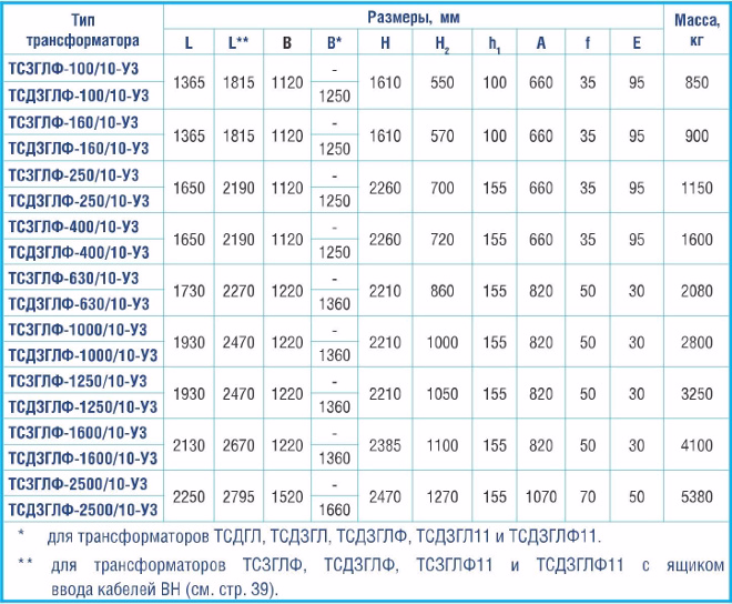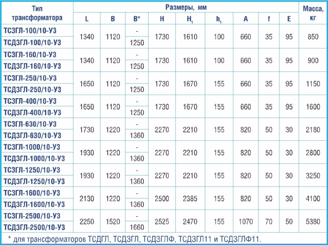 трансформаторы серии ТСГЛ, ТСЗГЛ, ТСЗГЛФ, ТСЗГЛФ11, ТСДГЛ, ТСДЗГЛ, ТСДЗГЛФ, ТСДЗГЛ11, ТСДЗГЛФ11 классов напряжения до 10 кВ с обмотками из алюминия;