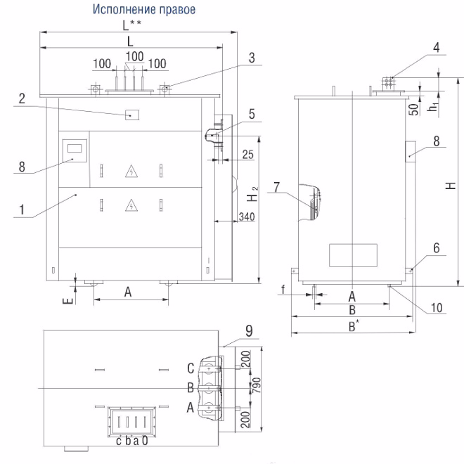 Трансформаторы комплектуются обмотками склассом нагревостойкости изоляции F.